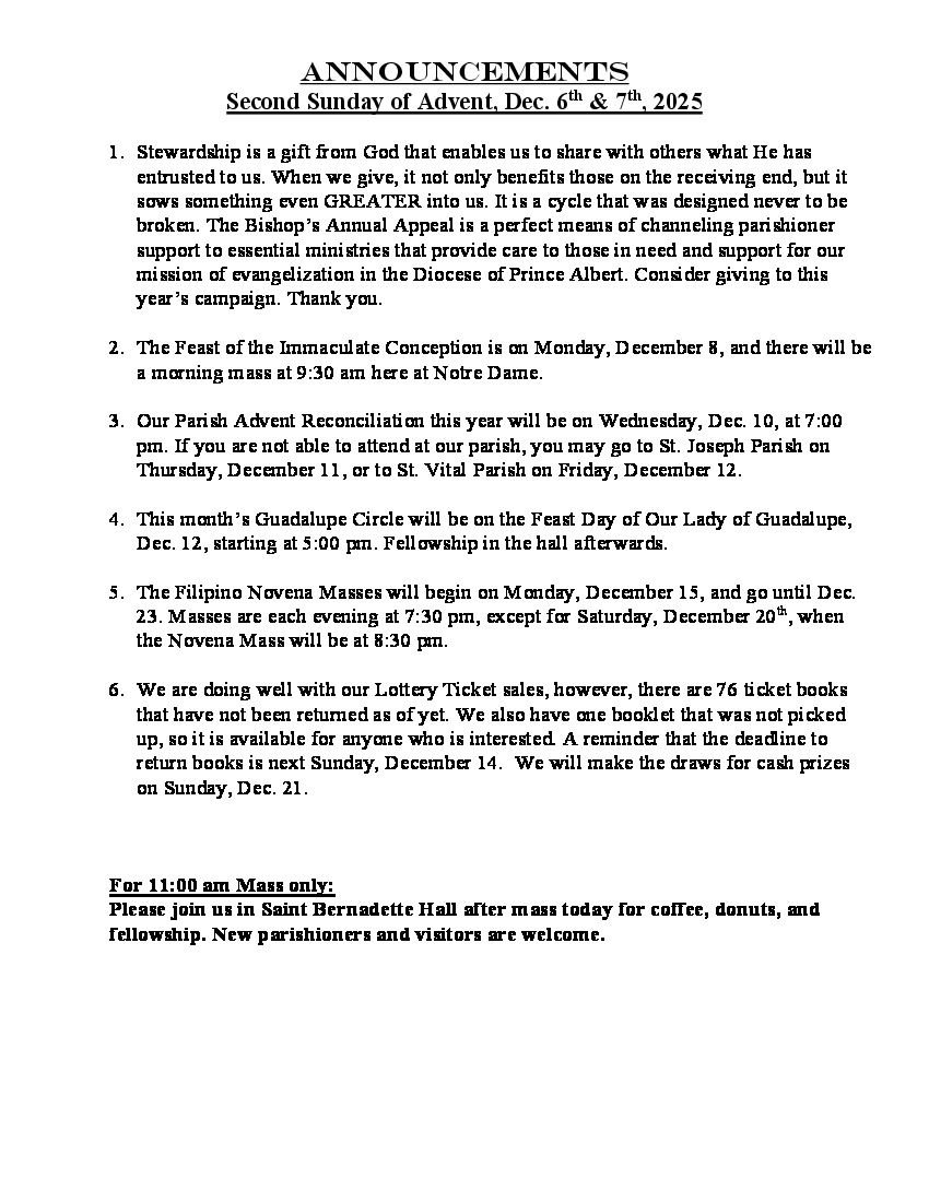 Welcome to the Notre Dame de Lourdes Parish Roman Catholic website.